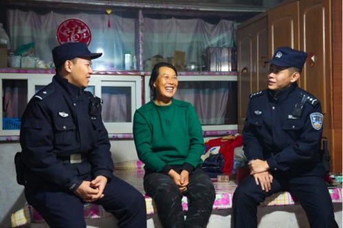 “李大爷,您儿子一家在外地,我们已把您纳入重点关怀对象,这是我的联系卡,有事随时打电话!”红星村社区民警在走访独居老人时,一边记录情况,一边叮嘱道。