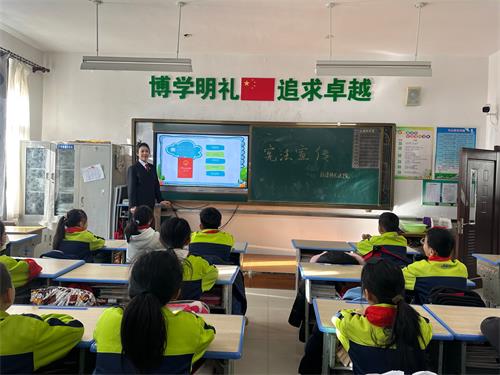 课堂上,魏为为同学们阐述了设立国家宪法日的重大意义,紧紧围绕“我们为什么要遵守宪法”、“宪法与每个人的关系”以及“如何从自身做起”三个维度展开讲解。结合学生的年龄特点和认知水平,详细阐述宪法确立的国家根本制度、基本权利与义务,说明遵守宪法和法律对于维护社会公平正义、保障每个人健康成长的重要性。