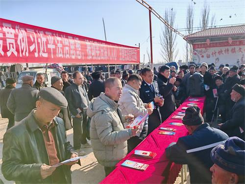 活动当天,正值巴扎日,周边村民、商贩齐聚,人流量大、宣传覆盖面广。法官们结合乡村群众生产生活实际,在巴扎入口处搭建起简易普法宣传点,通过悬挂横幅、发放宪法宣传折页、现场答疑解惑等形式,用通俗易懂的“方言土语”解读法律条款中与群众息息相关的民间借贷、婚姻家庭、邻里纠纷、土地流转等法律条款,让抽象的法律条文变成“听得懂、用得上”的生活指南。