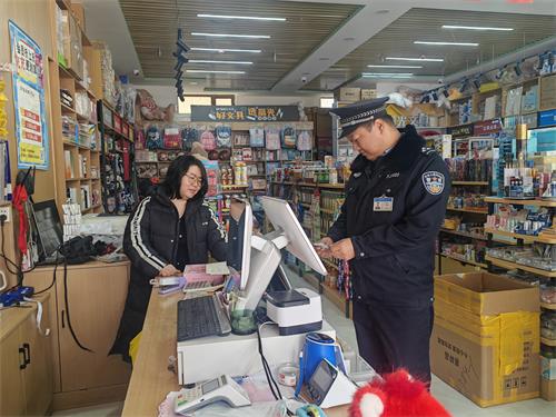 在固定商店排查中,民警以校园200米范围内的超市、便利店、文具兼营食品店为重点,严格核查经营资质,确保营业执照、食品经营许可证齐全有效,从业人员健康证在有效期内;同时聚焦学生常购的零食、饮料、散装食品,逐一核对生产日期与保质期,严查过期、变质及“三无”产品,对部分店铺进货台账不全、食品与非食品混放等问题,责令其当场整改。针对流动商贩隐蔽性强、流动性大的特点,民警采取“高峰值守+错峰巡查”策略,在上下学关键时段加密校园周边路段巡逻频次,重点查处无经营资质、无健康证明的流动摊贩,对售卖油炸食品、自制零食等产品的商贩,现场核查食品来源与质量,对无法提供合格证明、存在安全隐患的食品依法扣押,坚决杜绝问题食品流入学生群体。