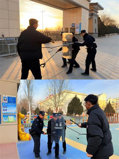 培训现场,派出所民辅警结合校园安全工作实际,围绕最小单元作战的核心要义与实操技巧展开讲解。针对校园可能出现的突发情况,民辅警详细演示了盾牌、钢叉等防护器械的规范使用方法,从站位配合、攻防技巧到应急处置流程,逐一拆解动作要领,确保参训人员看得懂、学得会、用得上。
