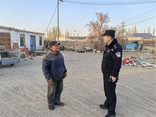 冬日的余晖洒在戈壁村落的碎石路上,莫高派出所值班民警在日常巡逻工作途中,偶遇辖区村民李大爷,随即停下脚步,开启了一场接地气的电信诈骗知识宣传。