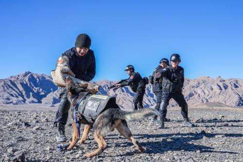 为进一步提升边境管控实战能力,1月13日,新疆出入境边防检查总站克州边境管理支队巴音库鲁提边境检查站组织开展警犬实战化科目训练。