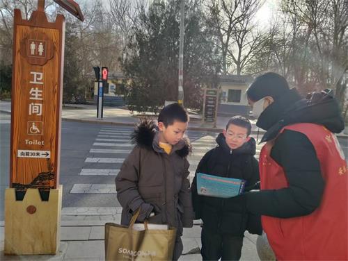 本次活动以“普及安全知识、倡导文明出行”为核心主题,社区工作人员与志愿者面向参与活动的中小学生开展精准化安全宣讲。活动现场,宣传人员结合青少年认知特点,通过互动问答、图文手册解读等生动形式,系统普及交通信号灯识别、人行横道通行规范、乘车安全须知等基础交通常识。针对寒假期间走亲访友、户外游玩、短途出行等高频场景,宣传人员重点讲解了横穿马路、骑行单车、乘坐私家车等行为的安全注意事项,用通俗易懂的语言剖析违规出行的潜在风险与危害,让青少年直观理解交通安全的重要性。同时,现场发放交通安全宣传折页、知识手册等资料,并配套赠送小礼品,充分调动孩子们的参与积极性,引导青少年主动学习安全知识、自觉遵守交通规则,推动“文明出行”理念入脑入心。