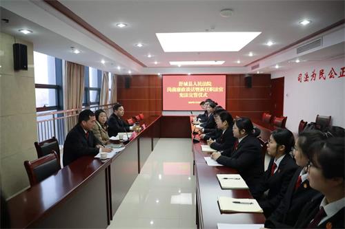 会议集中学习了习近平总书记关于全面从严治党重要论述、防止干预司法“三个规定”具体要求等内容,宣读了新任职法官的任命文件,新任职法官及新录用公务员代表进行了岗前表态发言,参加宣誓的3名新任法官身着法袍、整装肃立,在领誓人何流带领下右手举拳,面向国徽庄严宣誓。