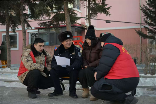 道外分局民警和志愿者们在社区开展安全宣传