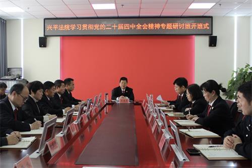 为深入学习贯彻党的二十届四中全会精神,切实把思想和行动统一到党中央决策部署上来,以审判工作现代化服务保障高质量发展,2月6日下午,兴平法院学习贯彻党的二十届四中全会精神专题研讨班开班。党组书记、院长王建宏主持开班仪式并作动员讲话。中层以上干警及员额法官参加开班仪式。