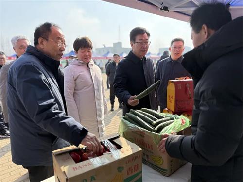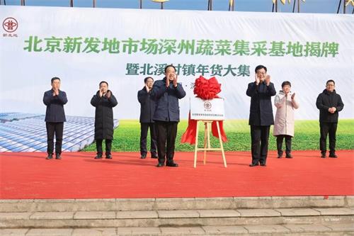2月7日,新发地深州市蔬菜集采基地揭牌仪式在河北深州举行。新发地市场董事长张玉玺出席仪式,与衡水市副市长支斌共同揭牌。衡水市农业农村局局长何洪超、深州市市委书记冯淑云、市长郑学国等领导出席活动,共同考察设施蔬菜种植大棚。张玉玺董事长表示,深州蔬菜集采基地的建成是推动产销精准对接、保障首都农产品稳定供应的重要举措。