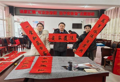 墨香传法治,春联迎新春。为让法治精神随民俗文化浸润人心,筑牢节日平安防线,2月9日,金寨县汤家汇镇立足“红色底蕴+民俗特色”资源优势,精心组织开展“写法治春联 迎平安新春”主题活动,将传统春联文化与法治宣传教育深度融合,以群众喜闻乐见的形式送上新春祝福与法律保障,让“法治年味”浸润乡村沃土。