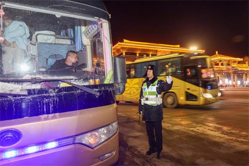 21时20分许,历经近5个小时风雪跋涉,车队顺利抵达哈尔滨市区交界。早已在此等候的香坊大队交警迅速接过“接力棒”,继续引导车辆有序分流至市区各主要路口。沿线各关键路口均有警力值守,强化疏导联动,确保从哈阿高速进入市区的每一个路口都通行顺畅,秩序井然。