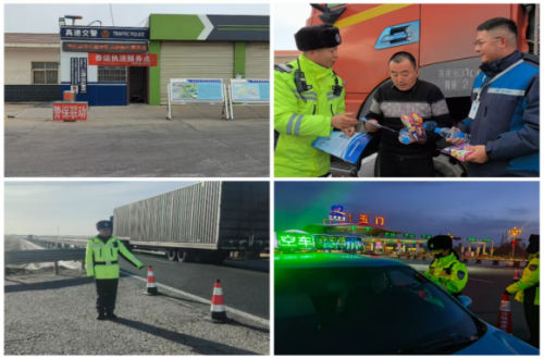 五、加强宣传引导,营造安全出行氛围。立足大队实际,创新宣传形式,丰富宣传内容,构建“线上+线下”全方位宣传矩阵,线上依托支队微信抖音公众号、酒泉日报、平安甘肃等新媒体平台,及时制作发布返乡高峰流量预判、拥堵路段安全提示、行车安全常识及交通违法行为整治动态,引导群众错峰出行、文明出行;线下组织民辅警在玉门收费站、服务区、警务室,通过摆放宣传展板、发放宣传资料的形式,向驾乘人员普及交通安全知识,重点提醒驾驶员杜绝疲劳驾驶、超速行驶等违法行为;同时,利用沿线电子显示屏滚动播放路况信息、天气情况,安全提示等警示标语,营造“人人讲安全、事事为安全、时时想安全、处处要安全”的浓厚氛围。