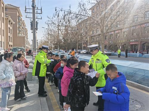 三、上好第一课:宣讲进校园 点亮“开学季”。在做好路面管控的同时,护学岗民警积极化身“宣传员”,利用护学时机面向学生及家长:用通俗易懂的语言讲解交通安全知识,强调遵守交通信号、不闯红灯、不在马路上追逐打闹的重要性,提醒家长以身作则,规范停车,佩戴安全头盔,系好安全带。针对学生骑行自行车、电动车上下学的情况,民警重点强调了“一盔一带”的重要性和未满16周岁不得骑行电动自行车的规定。此外,民警还鼓励学生们争做“小小交通安全宣传员”,将所学知识传递给家长,通过“小手拉大手”的方式,共同营造文明和谐的道路交通环境。