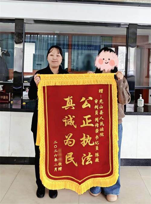 “我就怕耽误你们工作,锦旗年前就做好了,我今天才给送来。”3月12日,光山县法院内上演了暖心的一幕:当事人小张将一面印有“公正执法 真诚为民”的锦旗交到法官助理手中,并笑着解释这份“迟到的谢意”。