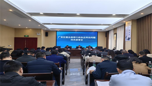 3月27日,广安区召开整治基层行政执法突出问题动员部署会。区委常委、政法委书记龚兵出席会议并讲话。会议深入贯彻中央、省、市关于群众身边不正之风和腐败问题集中整治的决策部署,全面动员部署集中整治行动,进一步规范执法行为、提升执法效能。会议传达了省市相关会议精神,区市场监管局现场发言,区公安分局、区综合执法局、区交通运输局、区应急管理局进行了书面汇报。区纪委监委负责人安排部署了相关工作。区级相关部门及各乡镇(街道)负责人参加了会议。