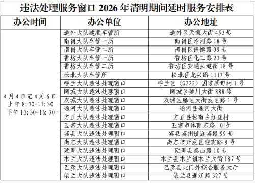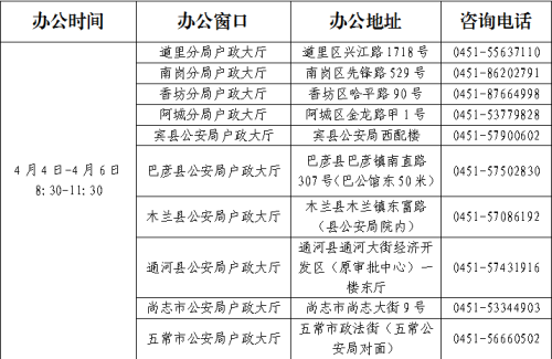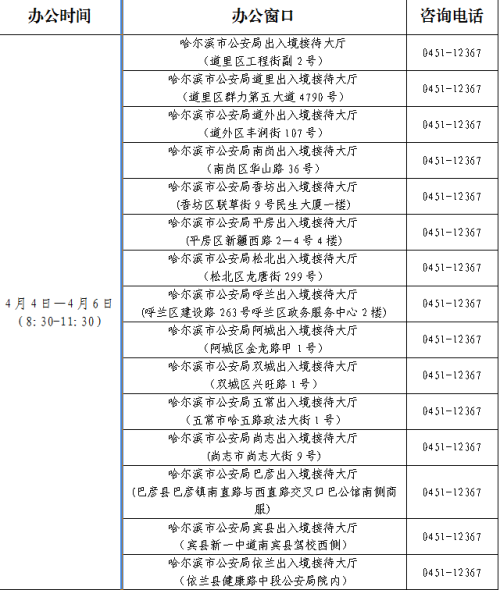 (本网编辑:胡万春 文:庄晶媛)为满足2026年清明节假期广大群众的办事需求,哈尔滨市公安局统筹全市户籍、出入境、交管三大类政务服务窗口,于4月4日至4月6日对外办公,全力保障群众假期办事便捷高效。