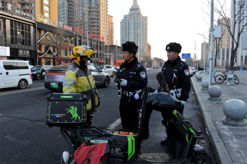 道路管控“刚柔济”。哈尔滨市公安局将道路交通安全教育融入路面执法全过程,秉持“教育为主、处罚为辅”原则,助力文明交通建设。对非机动车未戴头盔等一般性交通违法行为,推行柔性执法,通过现场讲解事故危害、发放安全宣传资料,引导群众自觉遵守通行规则。