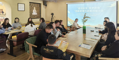 近日,“宿创未来•筑梦敦煌”创新管理与政策对接沙龙活动在敦煌无界成功举办,此次活动旨在实现政策精准对接、经验互通交流与供需匹配优化,助力敦煌特色产业创业创新提质增收。活动现场气氛热烈,循环播放的创业者风采短视频率先点燃氛围。