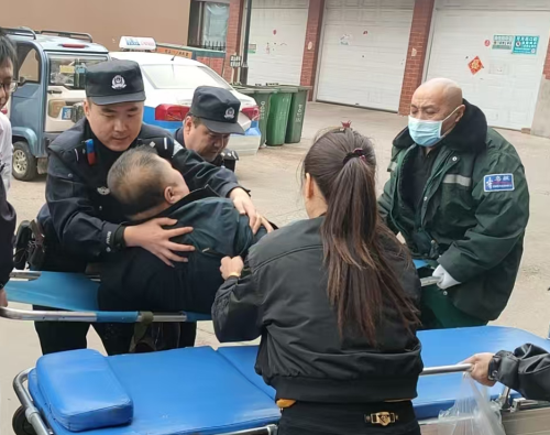 与此同时,民警同步拨打了120急救中心电话,准确报告了事发地点和受伤者状况。几分钟后,医护人员抵达现场。民警又主动协助急救人员对伤者进行初步检查和处理,随后合力将伤者平稳转移至担架上。从小区内到救护车停靠点,民警一路小心护送,确保转运过程安全无虞。