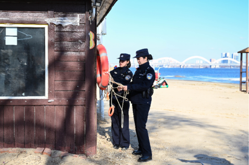 “天儿暖和了,有警察同志天天守护着,我们遛弯儿、观景心里也踏实!”一位在江边散步的居民由衷感叹。