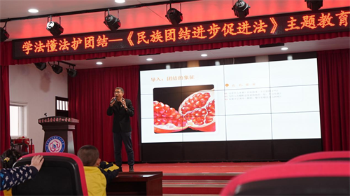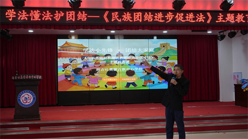 法治课堂入童心,团结理念记心间。学校德育副校长佟立为同学们带来一堂生动的《民族团结进步促进法》专题教育课。课堂上,佟校长用通俗易懂的语言,向学生讲解法律知识与民族团结的重要意义,引导同学们从小树立 “中华民族一家亲” 的思想,争做维护民族团结的小使者。