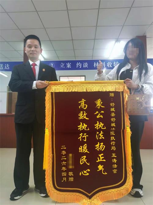一次精准拦截,两起案件圆满执结。申请人李某拿到失而复得的20000元,激动地向法院赠送锦旗。这面锦旗不仅是对执行干警雷霆作风的由衷褒奖,更是公平正义在“最后一公里”落地有声的生动见证。(作者单位:安徽省舒城县法院)
